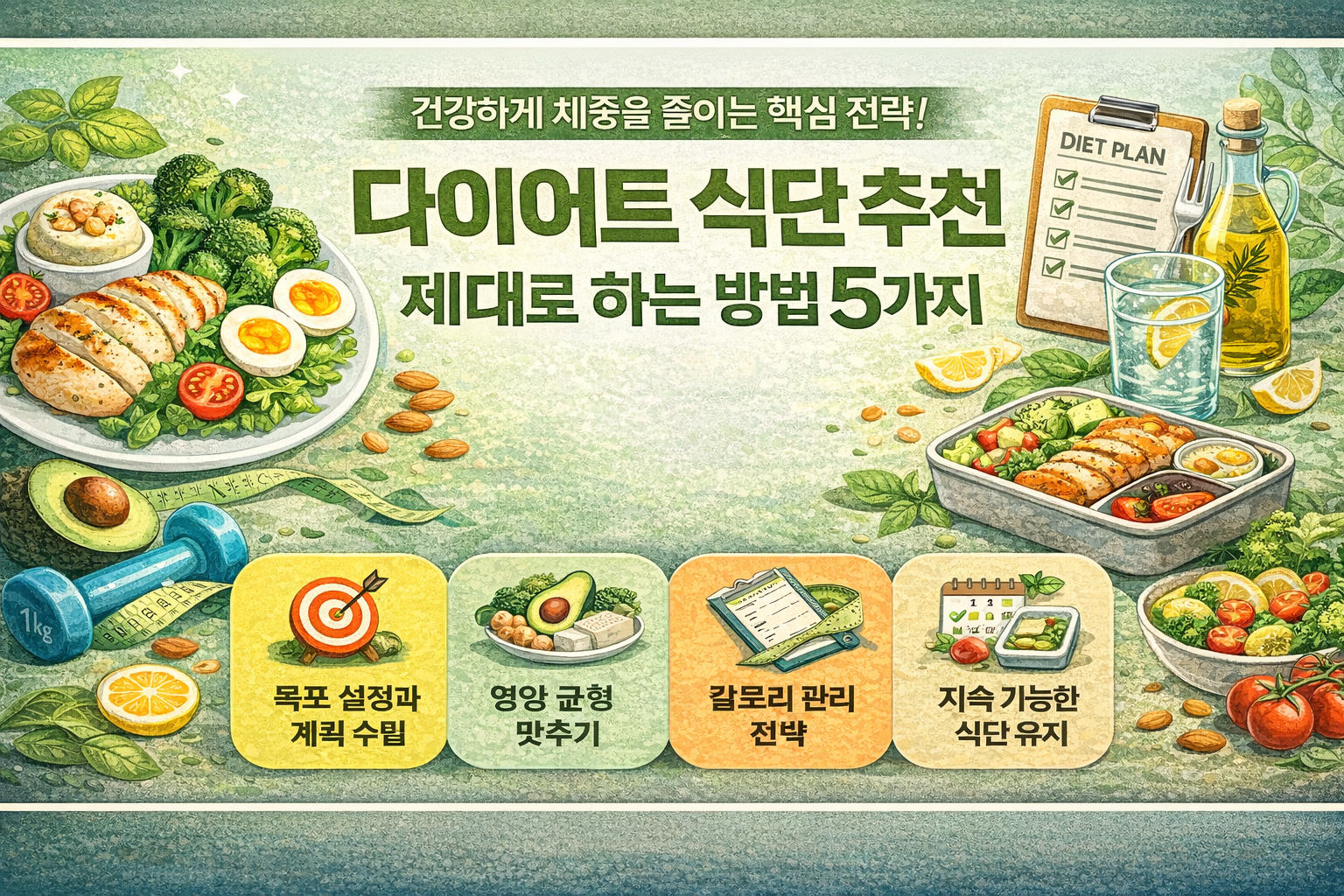 다이어트 식단 추천 제대로 하는 방법 5가지는 단순히 적게 먹는 것이 아닌 건강하게 체중을 줄이는 핵심 전략입니다. 올바른 식단 설계가 다이어트 성공을 좌우합니다.