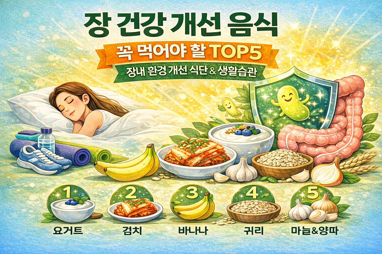 장 건강 개선 음식 꼭 먹어야 할 TOP5를 중심으로 장내 환경을 개선하는 식단과 생활습관을 정리하여 건강을 지키는 방법을 안내합니다.
